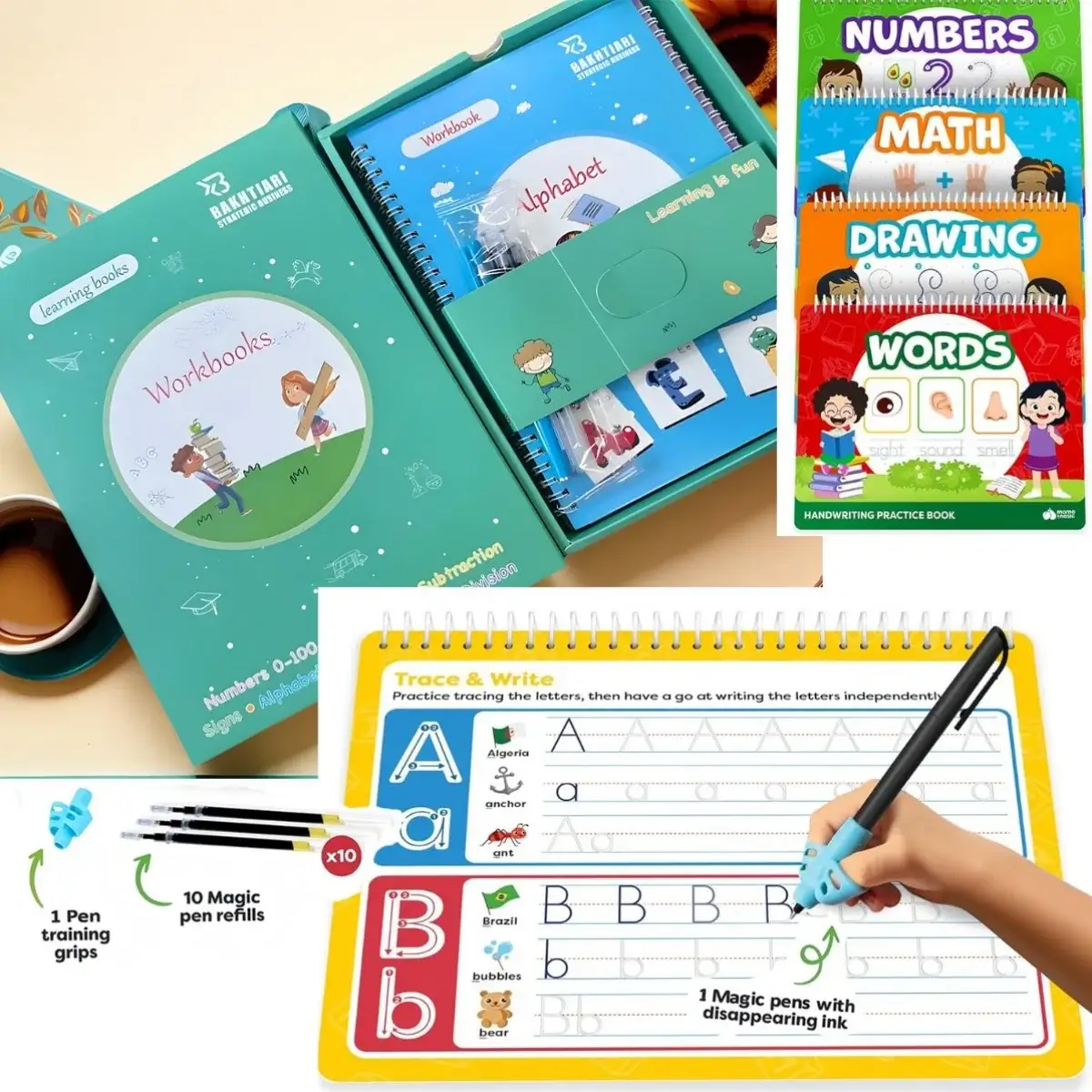 Words: Trace specially designed 3D letters, memorize spellings, and watch words form in front of your eyes.